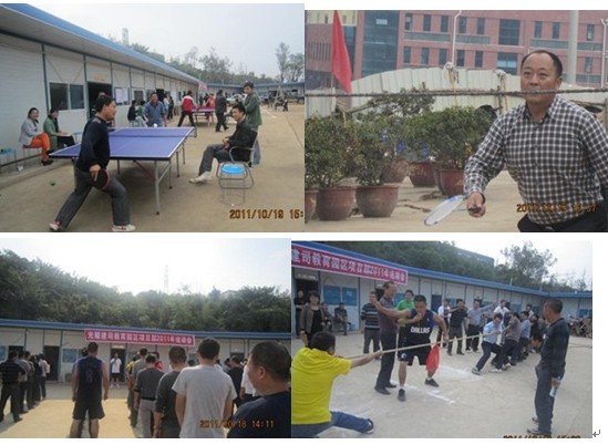 10月14-28日,由光耀建司行政部、财务部、工程部、耀森房产三台公司营销部分别组成的四支队伍分三次开展了三台片区首场比赛,比赛进行了登山、象棋、斗地主、羽毛球、自行车慢骑、麻将、6人7足、乒乓球传递等个人竞赛和团体竞赛项目。最终刘益新、石亚斌、王薇、刘赤、梁莉琳、杨灿、李亮、江涛、李学分别夺得登山、象棋、斗地主、羽毛球、自行车慢骑、麻将等个人比赛第一名,工程部、售房部分别夺得6人7足、乒乓球传递团体比赛第一名。