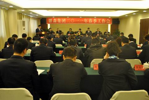 2011年2月25日下午,四川省耀森实业集团有限公司2011年春季工作会在绵州开元酒店十四楼海棠厅如期召开,集团董事长贺光耀、总经理李晋川、副总经理陈炳仲、副总经理邱禄、副总经理贺杰、副总经理王荫庭及来自集团各部门、各子公司、各项目部的60余位中高层领导及员工代表出席了会议。