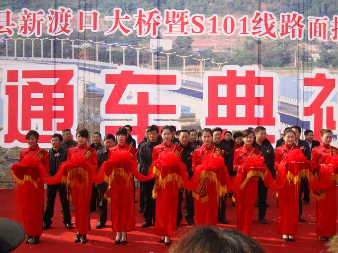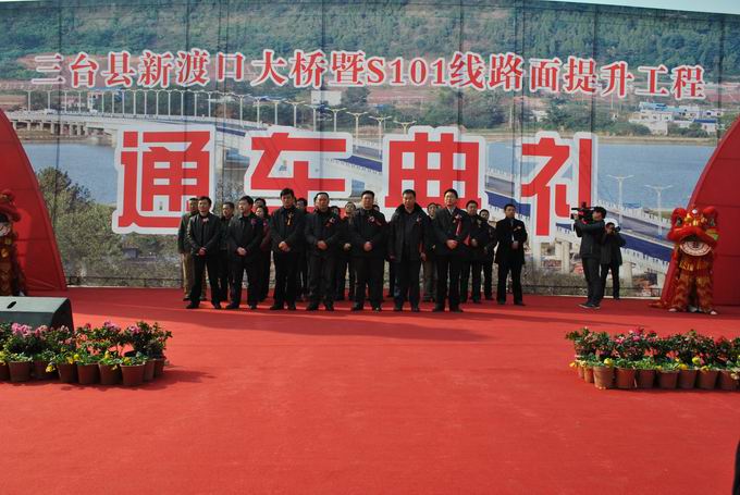 2011年1月11日,在阵阵鞭炮声中,三台县新渡口大桥暨S101线路面提升工程通车典礼隆重开幕,绵阳市交通局局长董晓彬、三台县县委书记崔斌、县长赵飚及县人大、县政协相关领导出席了典礼,四川省耀森实业集团有限公司董事长贺光耀代表融资方参加了剪彩仪式。