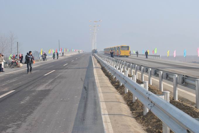 典礼上,绵阳市交通局局长董晓彬发表了重要讲话,详细介绍了马望路项目情况。三台县马望路(新渡口大桥)是绵遂高速的连接线工程,是省道S101线的改线工程,是缓解城市交通拥挤的重点工程。新渡口大桥于2010年6月18日顺利合拢。大桥桥面全幅铺装完成967.5米,完成栏杆基座1935米、中央分隔带972米,以及人行道板路沿石1935米。该工程按部颁一、二级标准修建。其中一级公路6.7公里,路面宽度23米,设计行车速度60公里/小时,设计荷载为公路I級,新渡口大桥桥宽24米,设计洪水频率1/100。