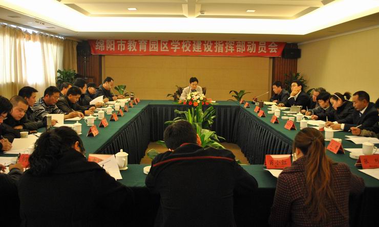 12月13日下午,绵阳市教育园区学校建设指挥部动员会在绵州开元酒店14楼召开,会议由项目部指挥长邱禄主持,集团公司董事长贺光耀、总经理李晋川及教育园区学校建设项目相关人员出席了此次会议。