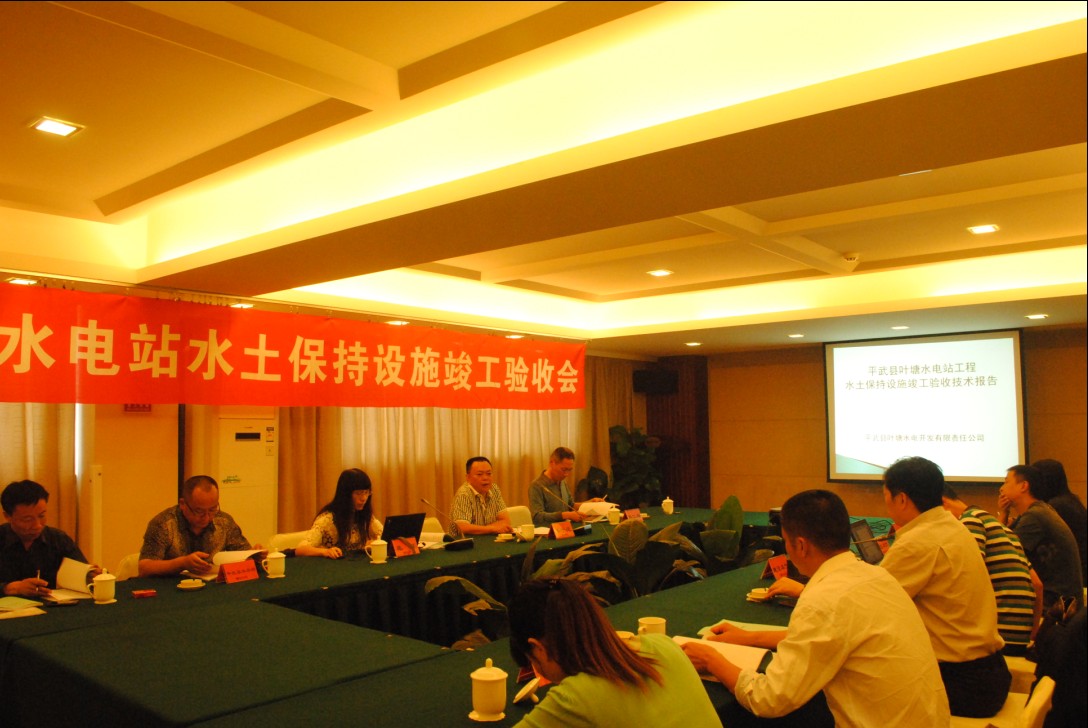 2013年9月5日,绵阳市水务局水土保持办公室在绵阳开元酒店主持召开了平武县叶塘水电站水土保持设施竣工验收会。参加会议的有平武县水务局、建设单位平武县叶塘水电开发有限责任公司、监理单位绵阳市禹兴建设工程监理有限公司、施工单位四川斌达建筑工程有限公司、水保方案编制单位等单位的代表、专家共计12人参加了会议。