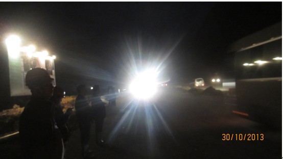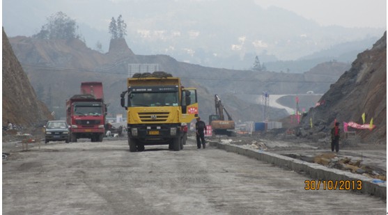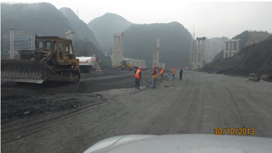 观摩团由毕节市委书记张吉勇带队,市委市政府各大班子、各局和各县委书记、县长等一行,分坐在9辆中巴车和12辆小车上,他们不顾一天汽车颠箥的疲劳,驱车从三甲场镇顺S307经我司承建的32米大道至教育园区,沿工业园区东路进入已完成沥青路面的32 米大道,从大道左幅到首端,再从右幅行驶全段,又从特用大渣料和级配碎石铺的便道进入行政中心,再驶入正在铺水稳料的三甲40米大道,观摩团车队在宽阔平坦的大道上快速前进,整个过程约19:00结束。