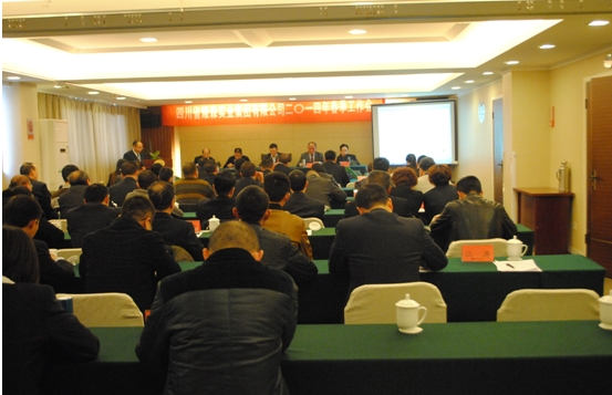 2014年3月10日,aoa体育集团在绵州开元酒店召开春季工作会,集团公司董事长贺光耀、副总经理邱禄、贺杰、王荫庭,董事长助理黎焰及公司中层以上管理干部共计60余人参加了会议。