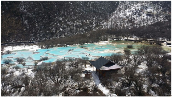 虽然长期身处黄龙、九寨边缘,但大部分员工都是途经路过,没有时间或机会亲自到景区去观赏,利用这次工会活动,满足了大家的心愿。只是四月的黄龙,还没有完全醒来,披着满身的积雪,还在冬的睡意朦胧中,带着对春的期盼,对夏的向往,对秋的迷恋。我们踏遍了黄龙的每一条小径,寻找我们心中的黄龙美景,积雪中的高山迎宾彩池,色彩虽然斑斓,但明显少了几分生动和灵气;石灰华钙堆积的叠瀑,在积雪的包裹下,像一个神秘的东方少女,难睹真容。急得大家大声疾呼:黄龙,我来了,你在哪?