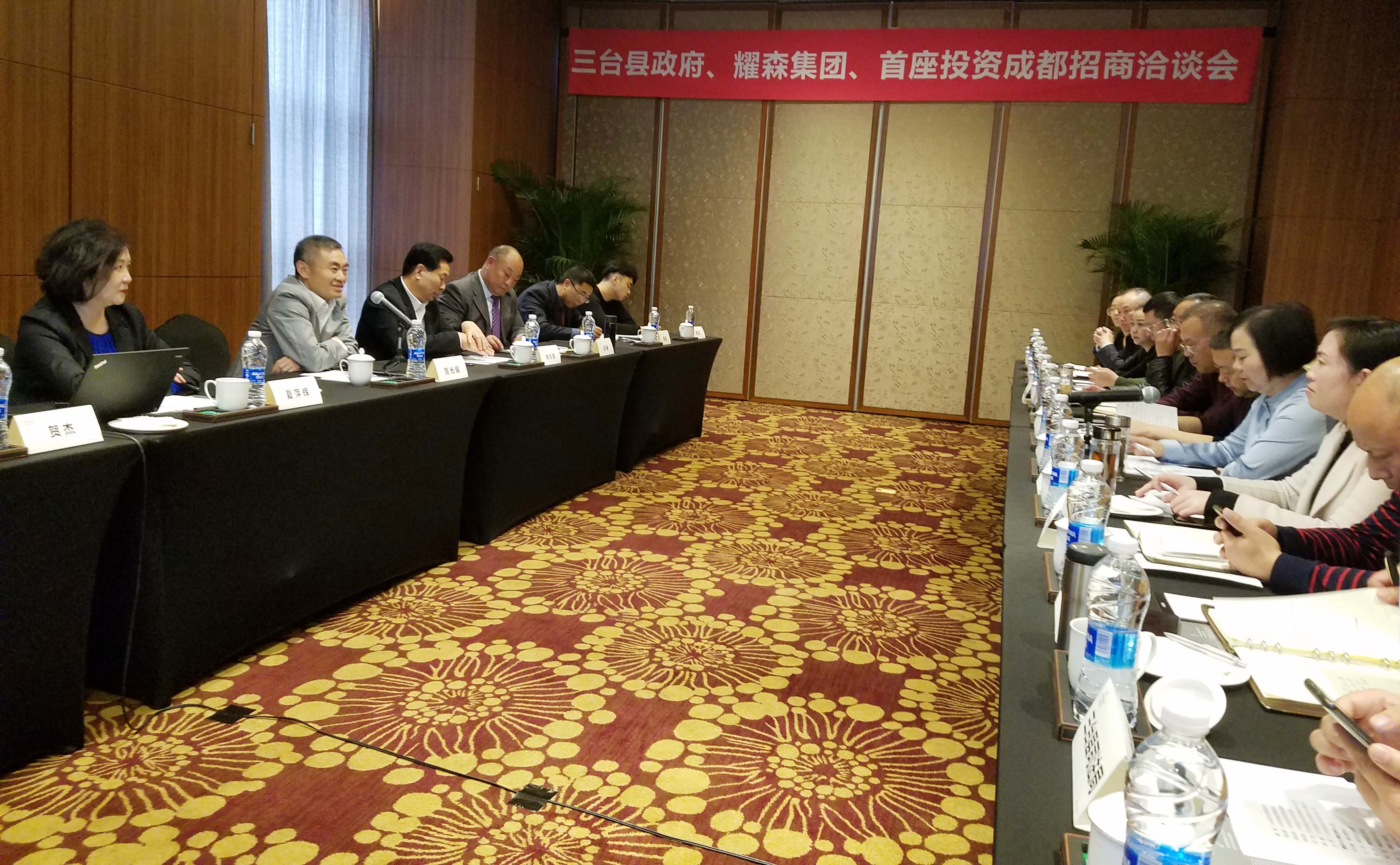 2020年11月13日下午,三台县政府、四川省耀森实业集团、首座投资集团在成都召开了招商洽谈会。三台县人大常委会主任杨增辉、政协主席贺强华及自然资源局、住建局、交通局、财政局、经合局、司法局、重点项目办、宏达公司等八个部门主要负责人,aoa体育集团董事长贺光耀及所有公司高层管理人员,首座投资集团董事长向志信等参加了洽谈会,双方就招商项目及投资意愿进行了广泛地交流,洽谈会达到了预期效果。