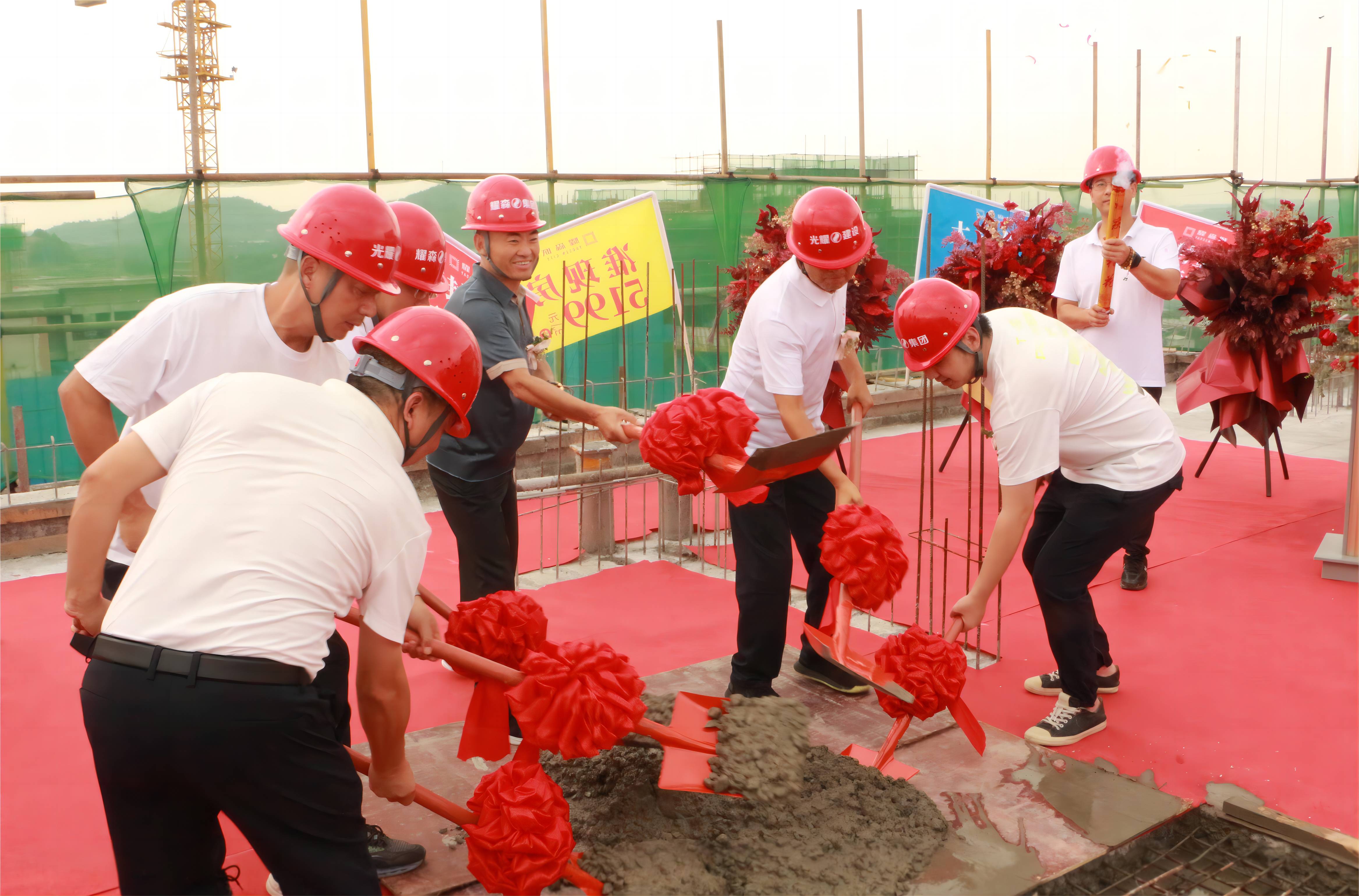 随后,集团领导们挥动金铲为主体全面封顶浇筑最后一罐混凝土,活动现场礼花绽放、鞭炮轰鸣,至此,封顶仪式圆满完成。